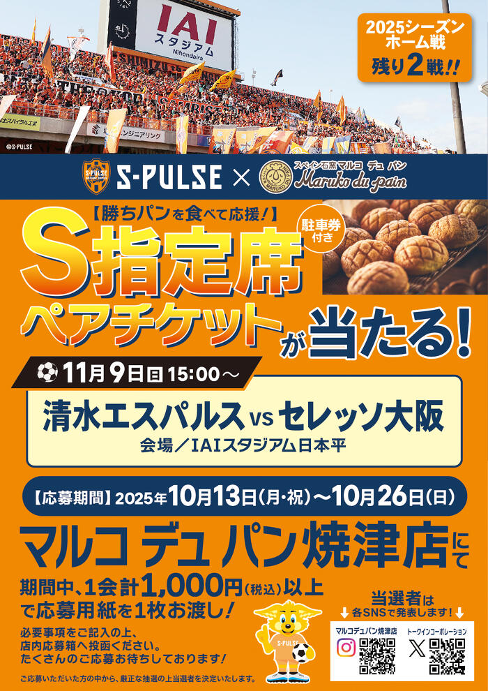 【マルコ 焼津店】清水エスパルス S指定席観戦ペアチケットプレゼント